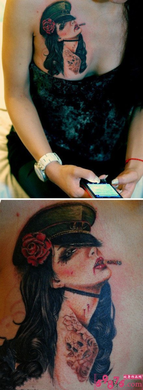 这是一个很让人遐想的纹身,我看到的时候邪恶_胸部纹身图案大全_纹身图吧
