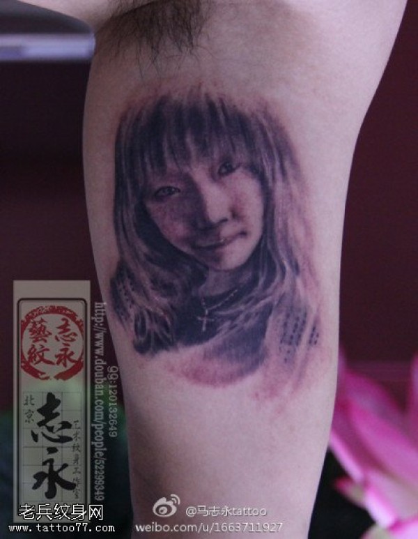清纯女孩腿上可爱肖像纹身图片_肖像纹身图案大全_纹身图吧