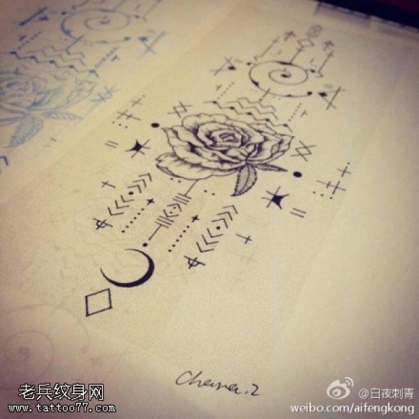 玫瑰花纹身手稿图案