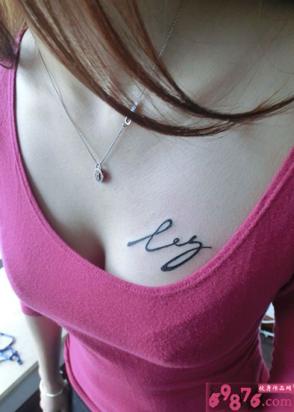 性感胸部英文字母纹身图片