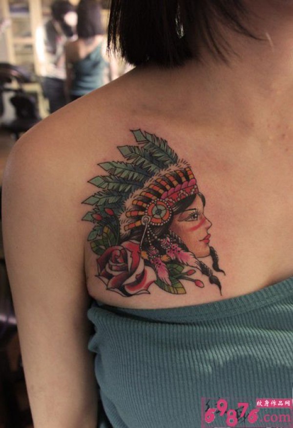 女生肩花纹身_15张女性双肩对称的肩花纹身图案作品图片