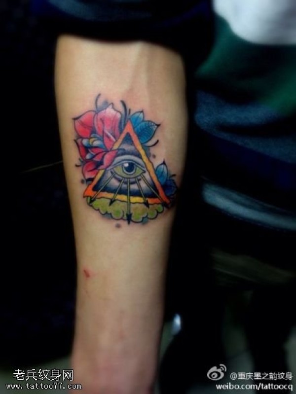 手臂彩色上帝之眼玫瑰纹身图