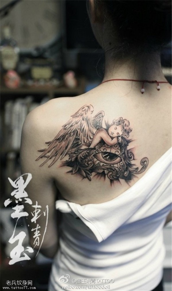 女生肩花纹身_15张女性双肩对称的肩花纹身图案作品图片
