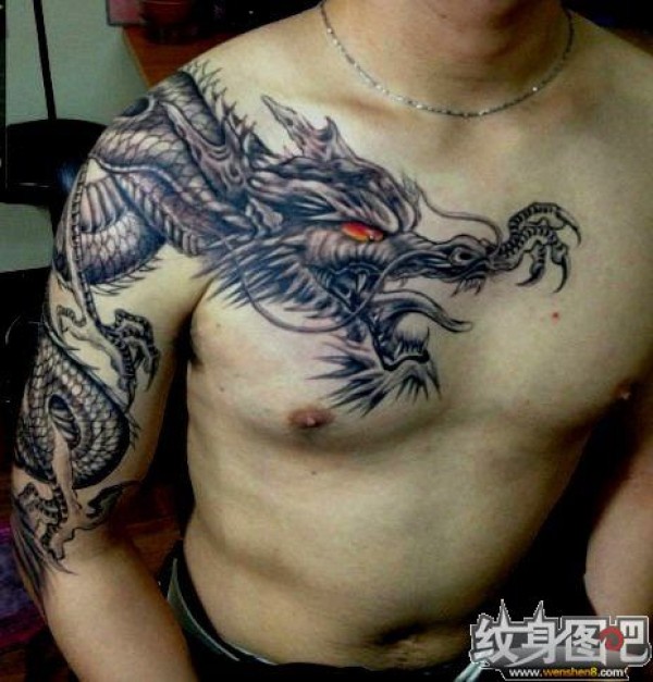 上海远航纹身,上海纹身店作品,过肩龙纹身图片