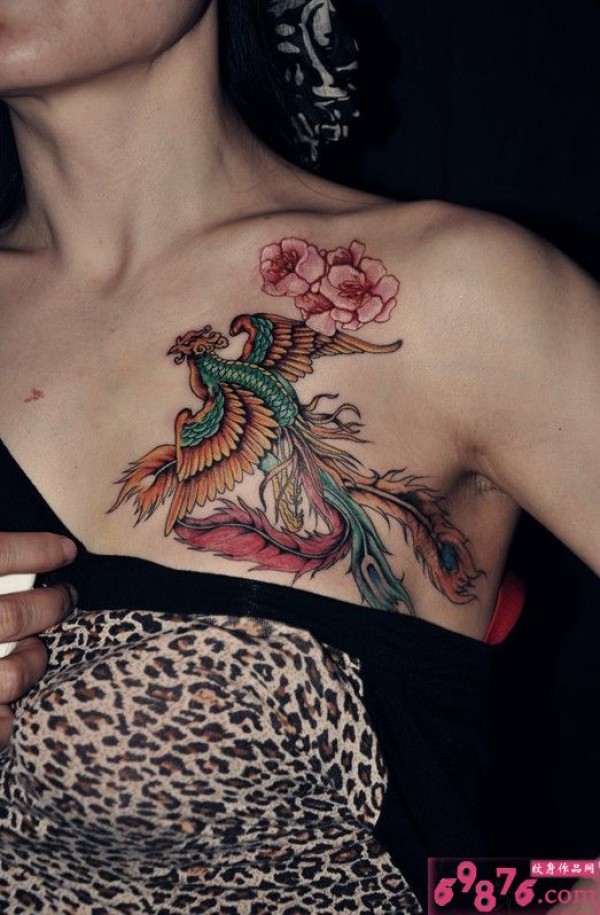女生胸前火凤凰纹身