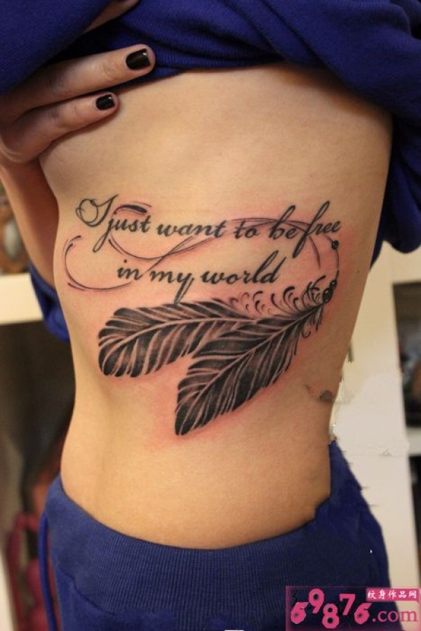 分享一款腰部时尚性感的蝶恋花纹身图案_腰部纹身图案大全_纹身图吧