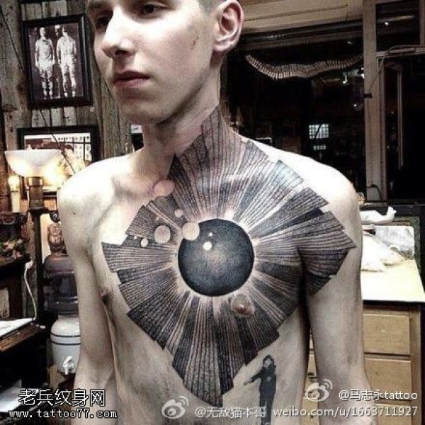 纹身图案胸部男 简洁大方的男生胸部纹身图案