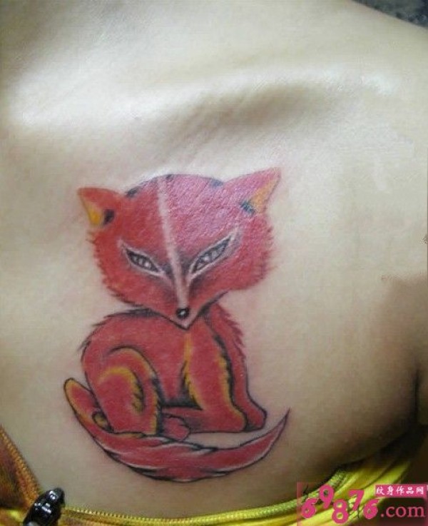 胸前红色狐狸纹身图片