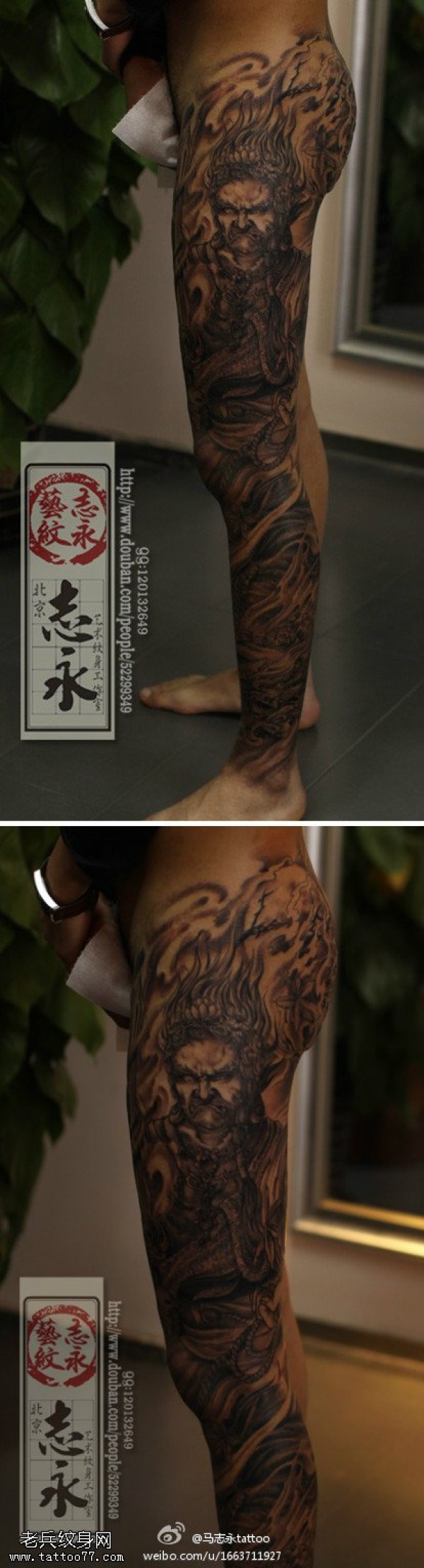 传统花腿纹身--18张传统风格的大花腿纹身图案作品
