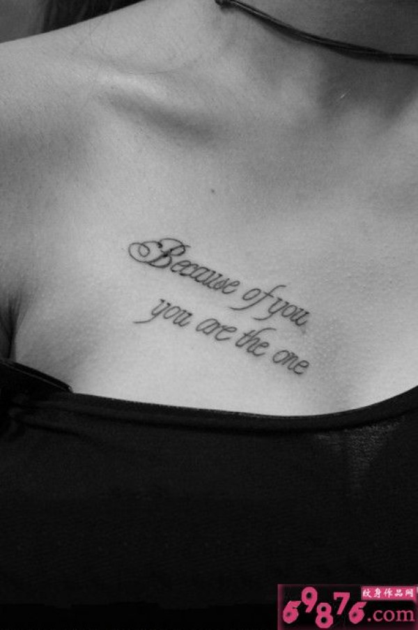 女性胸前唯美英文纹身图片