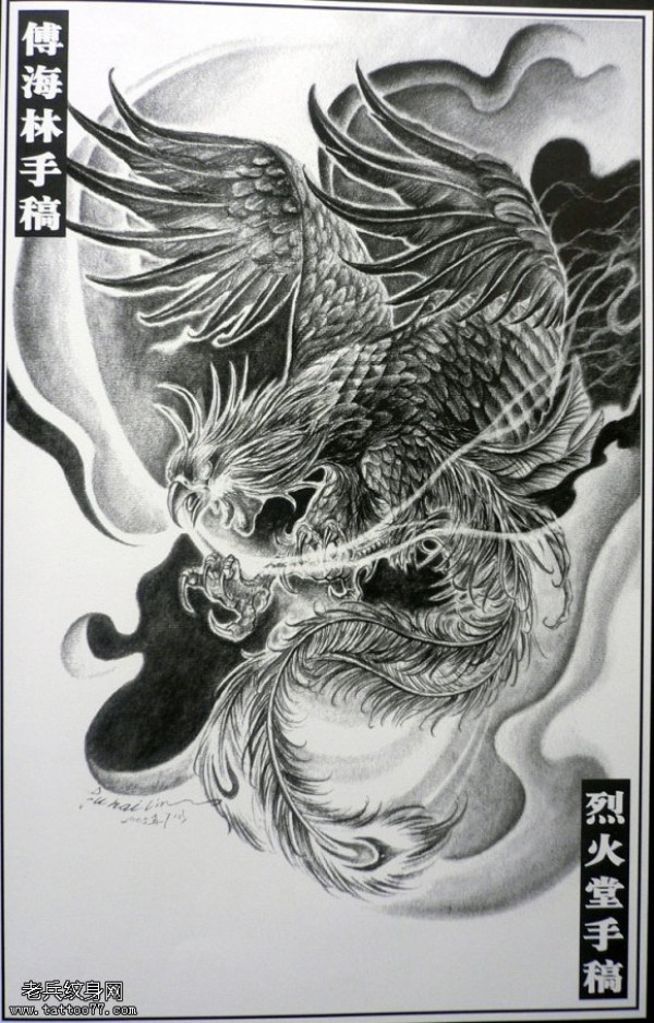 龙纹身手稿_一组老传统黑灰龙手稿纹身图案