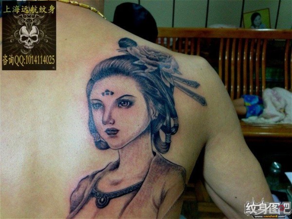 女性肩部肖像刺青_肖像纹身图案大全_纹身图吧