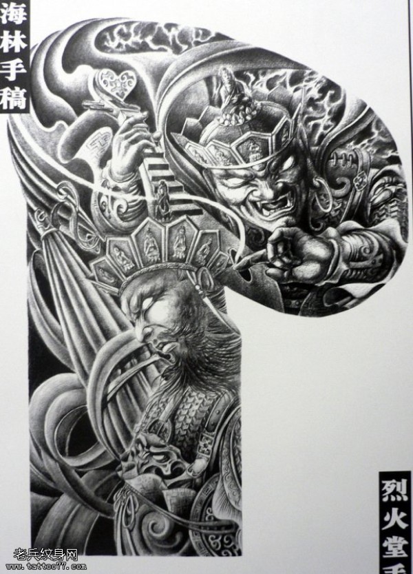 能面万媚纹身手稿_52张日式能剧面具纹身手稿图案素材欣赏