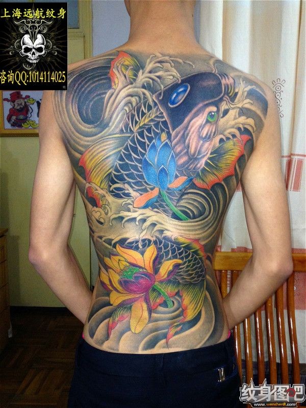 上海远航纹身,后背纹身图片,满背鱼纹身