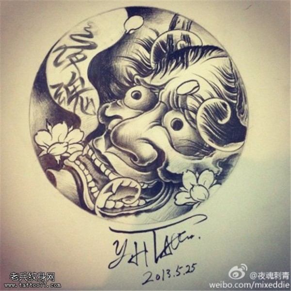能面万媚纹身手稿_52张日式能剧面具纹身手稿图案素材欣赏