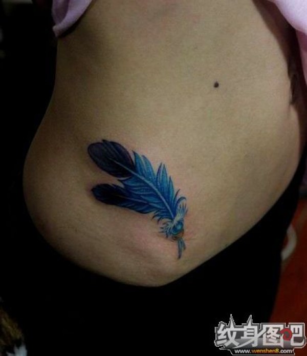两根蓝色的羽毛纹身图案