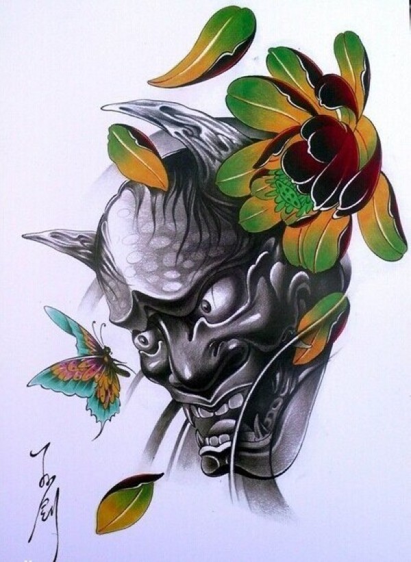 传统艺妓般若纹身图案手稿