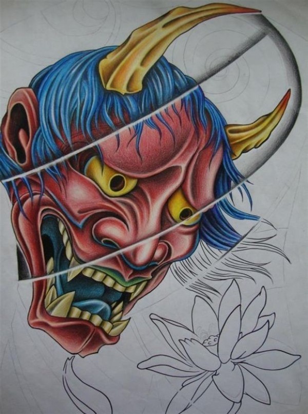 传统艺妓般若纹身图案手稿