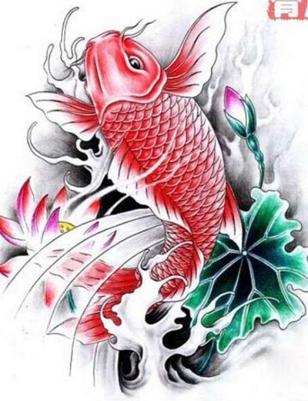漂亮时尚的红鲤鱼纹身手稿