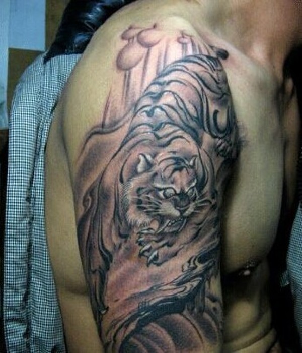 霸气半胛老虎纹身_动物纹身图案大全_纹身图吧
