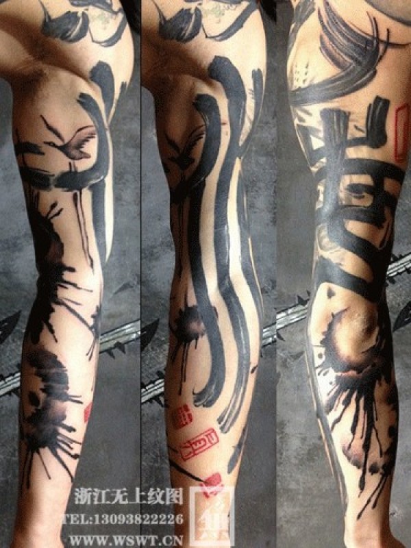 手臂水墨纹身