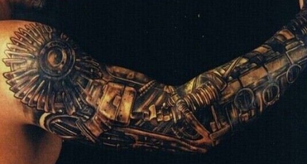 超级霸气的机械花臂纹身