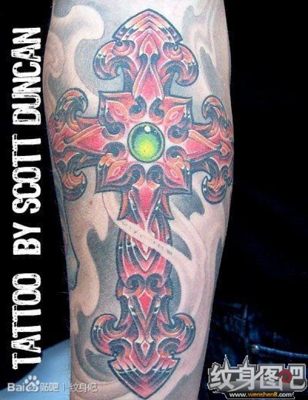 红色的十字架纹身图案