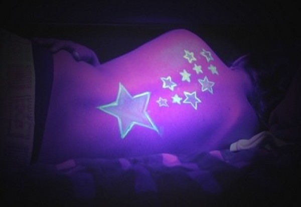 超级耀眼的背部荧光纹身