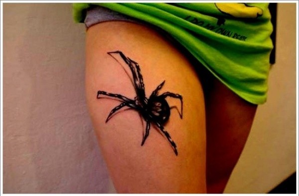 大腿部个性的蜘蛛纹身