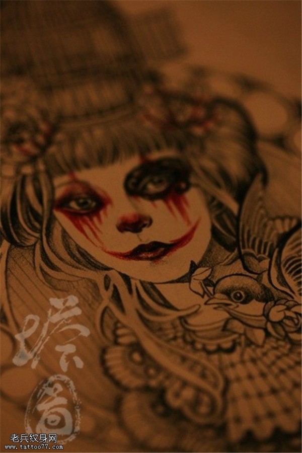 能面万媚纹身手稿_52张日式能剧面具纹身手稿图案素材欣赏