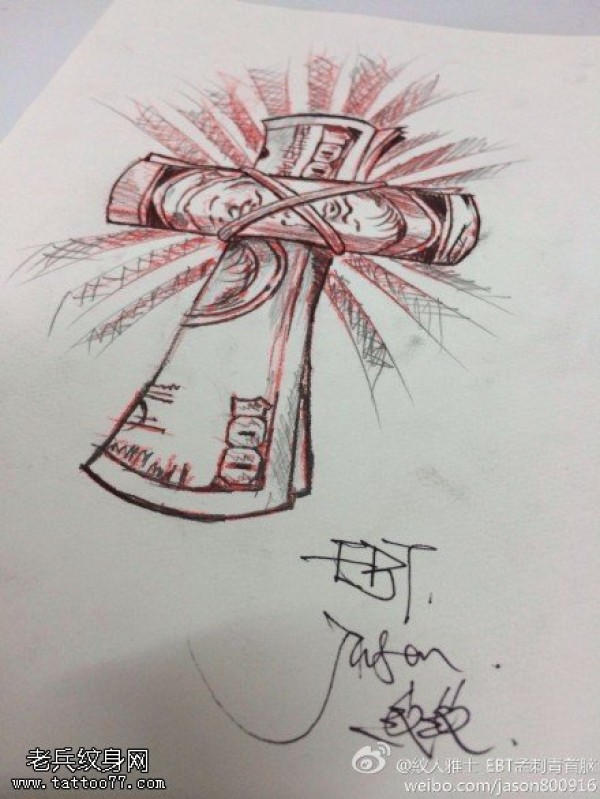 个性十字架纹身手稿图案