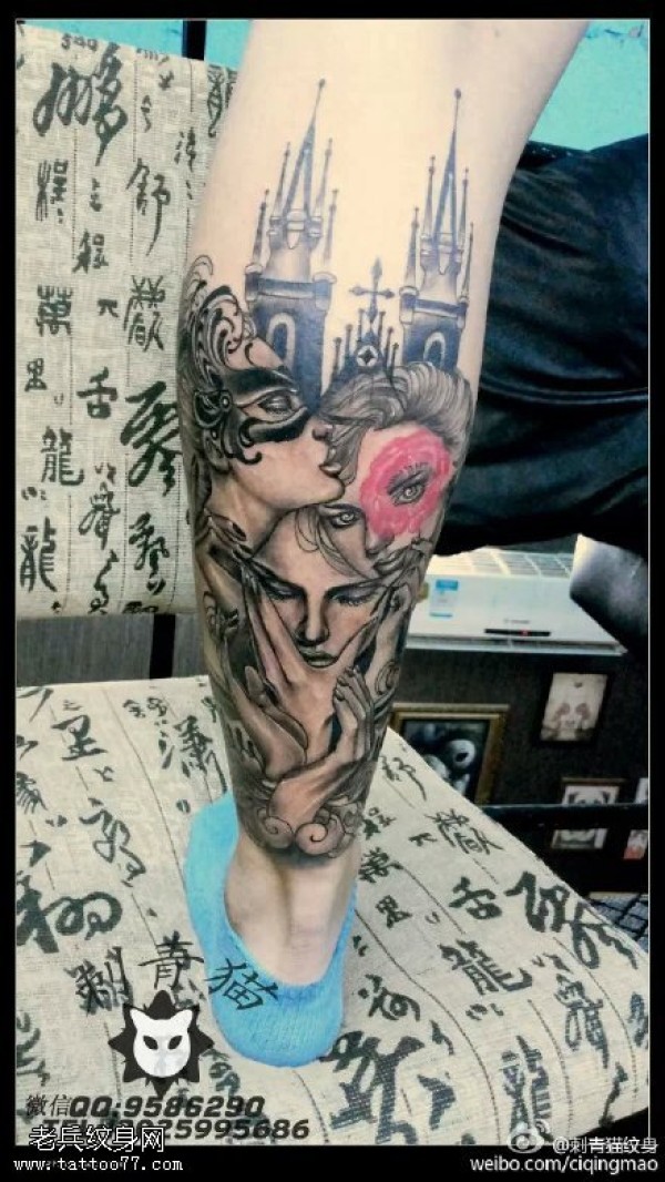 花腿纹身--一组大黑腿纹身图案作品欣赏