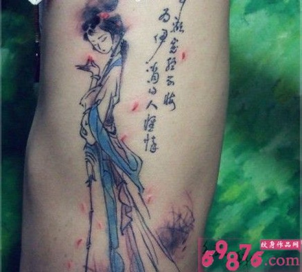 女性腰部莲花花纹刺青_腰部纹身图案大全_纹身图吧