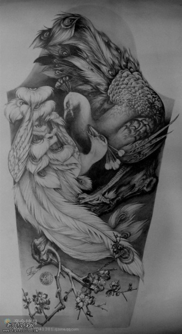 一款孔雀纹身图案