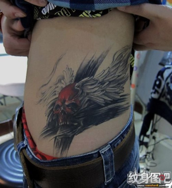 侧腰女骷髅刺青图案图片_骷髅纹身图案大全_纹身图吧