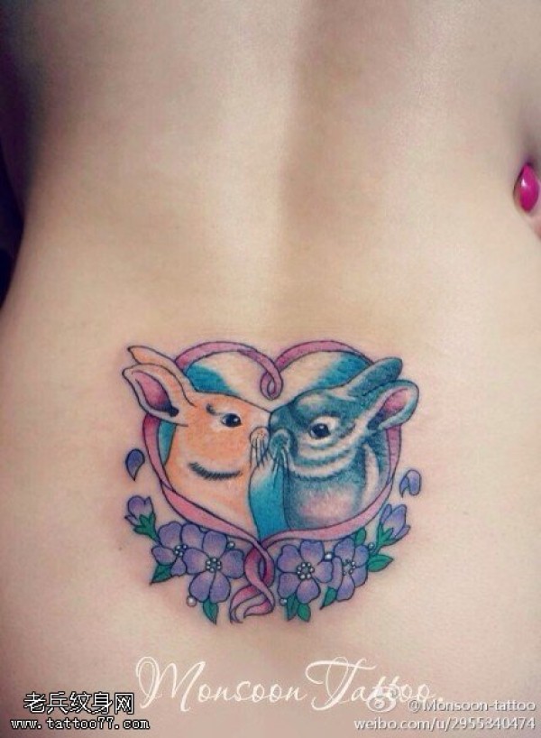 腰部彩色兔子纹身图