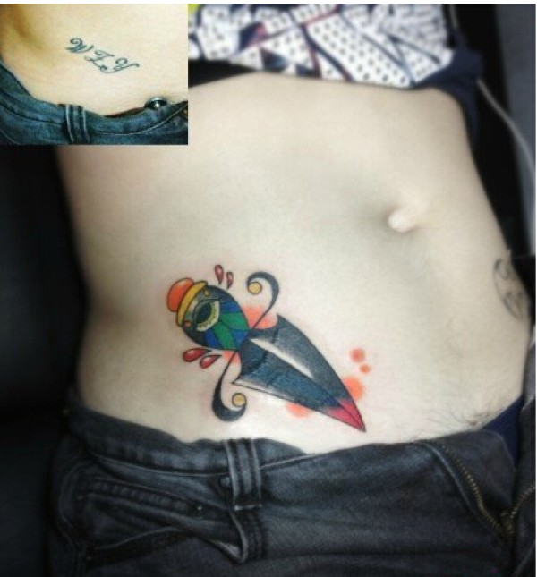 分享一款腰部时尚性感的蝶恋花纹身图案_腰部纹身图案大全_纹身图吧
