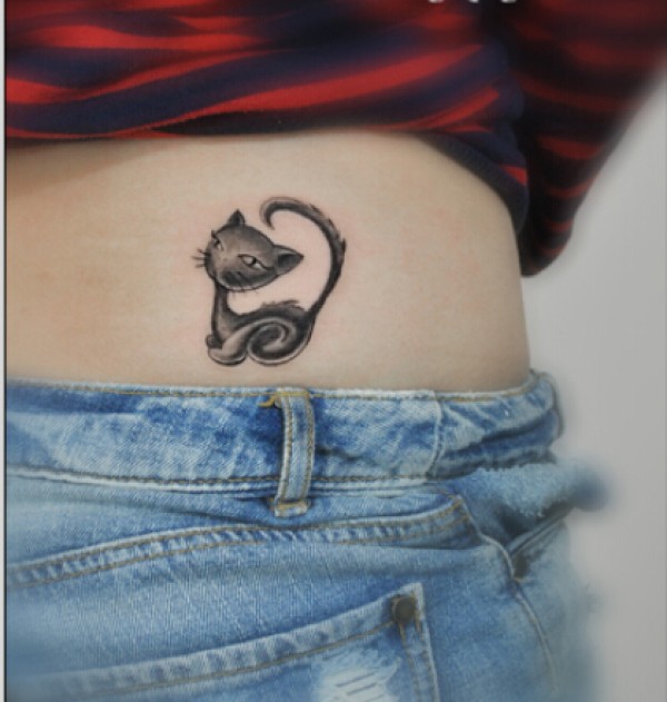 女生后腰纹身黑白灰风格抽象线条纹身图案