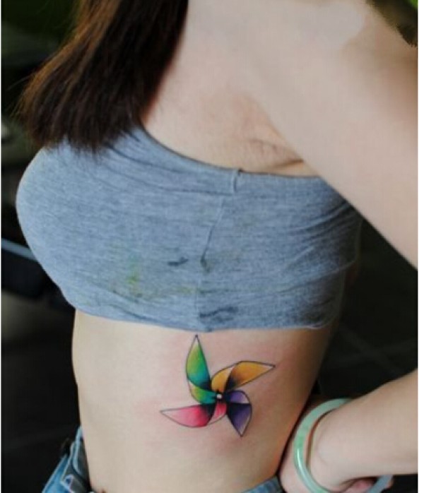 性感美女侧腰好看的彩虹风车纹身图片图片