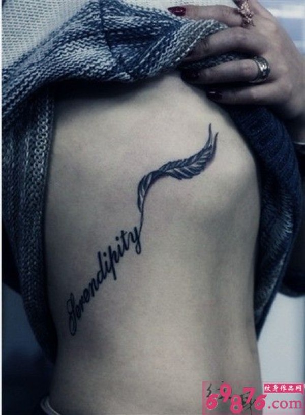 腰部性感时尚羽毛纹身图片