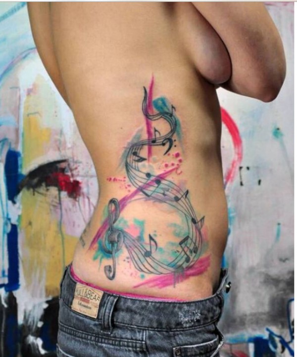 性感美女侧腰精美时尚唯美的音符纹身图片
