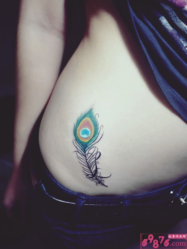 分享一款腰部时尚性感的蝶恋花纹身图案_腰部纹身图案大全_纹身图吧