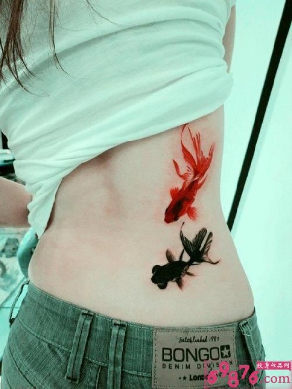 分享一款腰部时尚性感的蝶恋花纹身图案_腰部纹身图案大全_纹身图吧