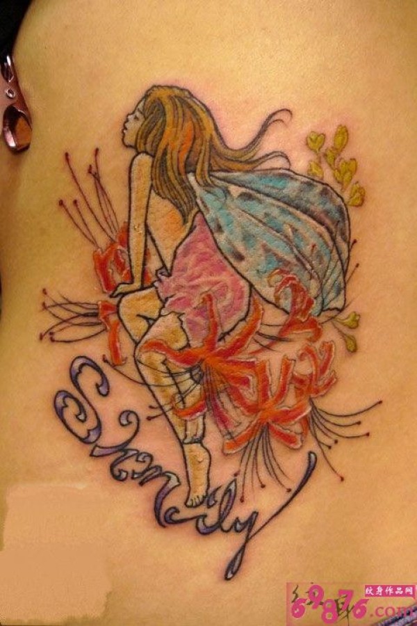 分享一款腰部时尚性感的蝶恋花纹身图案_腰部纹身图案大全_纹身图吧