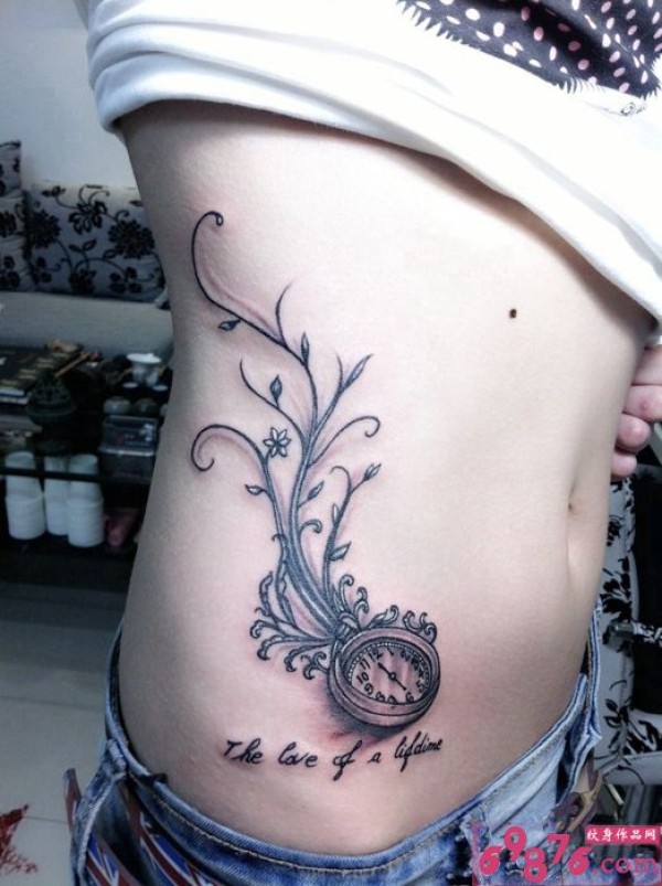 分享一款腰部时尚性感的蝶恋花纹身图案_腰部纹身图案大全_纹身图吧