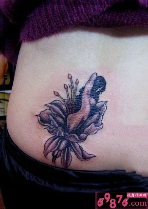 女性腰部莲花花纹刺青_腰部纹身图案大全_纹身图吧