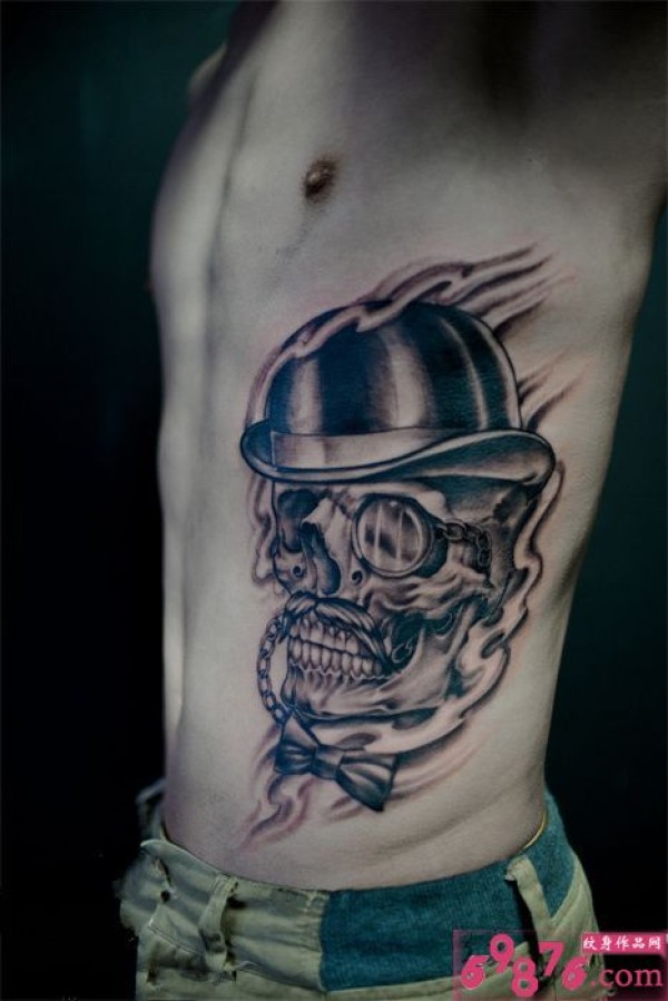 侧腰女骷髅刺青图案图片_骷髅纹身图案大全_纹身图吧