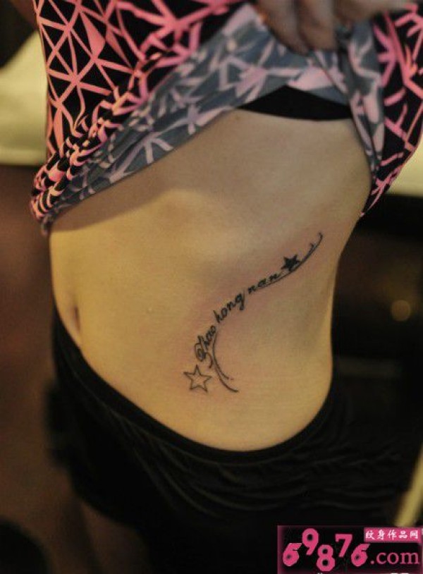 分享一款腰部时尚性感的蝶恋花纹身图案_腰部纹身图案大全_纹身图吧