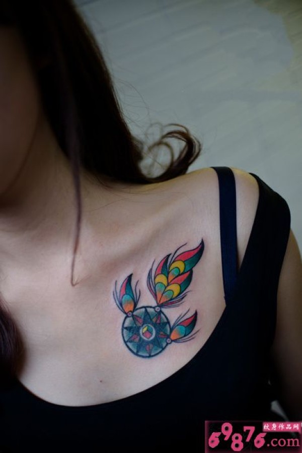 印第安炫彩捕梦网锁骨纹身图片