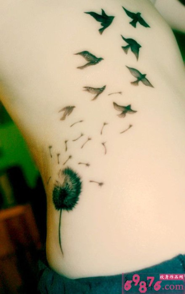 分享一款腰部时尚性感的蝶恋花纹身图案_腰部纹身图案大全_纹身图吧